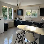 The kitchen amenities at Maison Independante A La Campagne feature an oven, provided in an outdoor dining area.